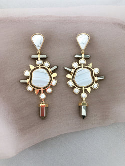 Rodio chapado de oro 14K, ágata gris, drusa plateada, howlita y cristal plateado.